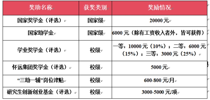 奖助体系完善:国家助学金(6000元/年,无工资收入者全覆盖)、国家奖学金(20000元/次)、学业奖学金(最高10000元/年,覆盖率50%)、“三助一辅”岗位津贴(600-800元/月)等多重奖助,为你解除学业后顾之忧,专注科研创新。