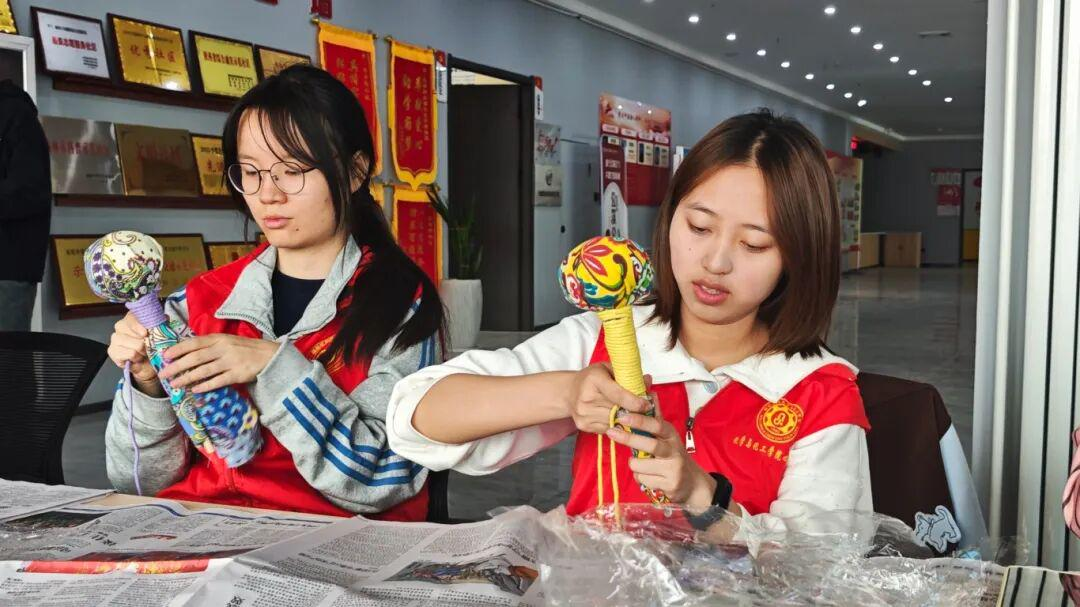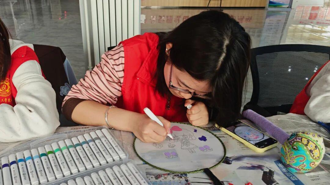 志愿者们手持马克笔专注绘制团扇。大家充分发挥想象力,勾勒色彩、填充图案,将春日生机与创意融入团扇之中。现场色彩缤纷,手作氛围浓厚,大学生志愿者以指尖巧思传递文化与温情,为活动增添了别样亮色。